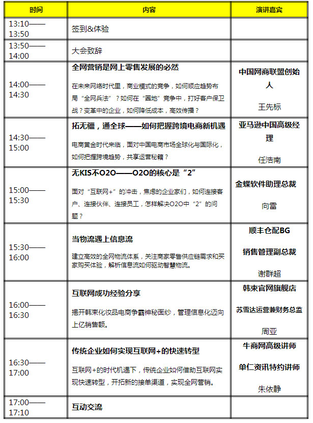 本次峰會面對對象為深圳電商龍頭企業(yè)、中小電商賣家代表、企業(yè)財務負責人、從事傳統(tǒng)加工貿易的制造商、生產(chǎn)廠家及有意向升級電商平臺開拓外貿市場的企業(yè)、行業(yè)機構等。時間為2015年09月19日(本周六)13:10—17:10,地點為深圳市南山區(qū)科技園科技南十二路金蝶軟件園。原價3980元入場門票,本次由金蝶集團和牛商網(wǎng)共同承擔相關費用,牛商網(wǎng)客戶、單仁學員報名免費參加!