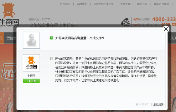 這個(gè)時(shí)候一個(gè)底子好,有優(yōu)化技術(shù)的網(wǎng)站顯得尤為重要。牛商網(wǎng)建設(shè)的營銷型網(wǎng)站,具備獨(dú)創(chuàng)的網(wǎng)站7大優(yōu)化結(jié)構(gòu),利于網(wǎng)站免費(fèi)排到搜索引擎首頁。此外營銷型網(wǎng)站還具備比一般的網(wǎng)站更好的訪客瀏覽體驗(yàn)。