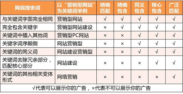 關(guān)鍵詞匹配模式介紹——下面我們以“營(yíng)銷(xiāo)型網(wǎng)站”為要推廣的關(guān)鍵詞舉例說(shuō)明,這三種匹配模式的展示規(guī)律: