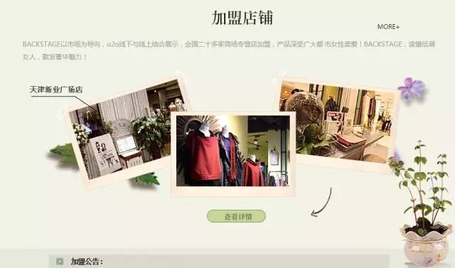 BACKSTAGE服飾PC網站:重點突出品牌風格,及加盟盈利模式
