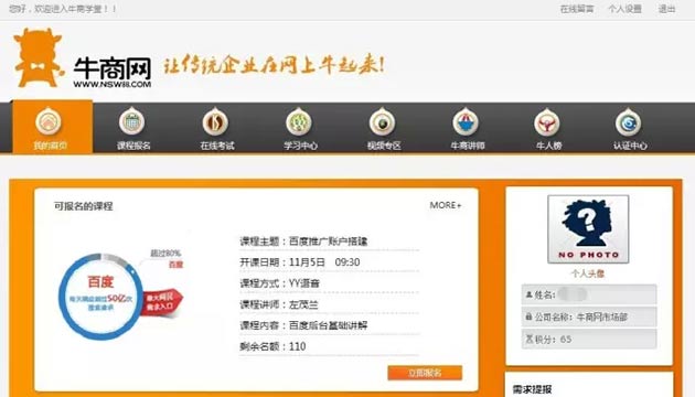 我們時(shí)常強(qiáng)調(diào),牛商網(wǎng)幫你做的不僅僅是一個(gè)網(wǎng)站,牛商網(wǎng)幫你做的是一個(gè)系統(tǒng),只有系統(tǒng)才能幫你網(wǎng)絡(luò)營(yíng)銷真正賺錢。營(yíng)銷型網(wǎng)站是網(wǎng)絡(luò)營(yíng)銷的好工具,我們企業(yè)要懂得如何利用這個(gè)工具來(lái)進(jìn)行推廣和營(yíng)銷自己的企業(yè)及產(chǎn)品。我們不但授之以魚(yú)還需要授之以漁,因此我們花費(fèi)了大量的人力物力搭建了牛商學(xué)堂系統(tǒng)。牛商網(wǎng)的講師們將會(huì)以YY語(yǔ)音、現(xiàn)場(chǎng)的方式為各大牛商建站企業(yè)提供一系列的培訓(xùn),幫助企業(yè)培訓(xùn)SEO和SEM相關(guān)推廣知識(shí),解決推廣人員專業(yè)度不足、運(yùn)營(yíng)效率較低等一系列問(wèn)題,節(jié)約一大筆企業(yè)人員的培訓(xùn)成本。