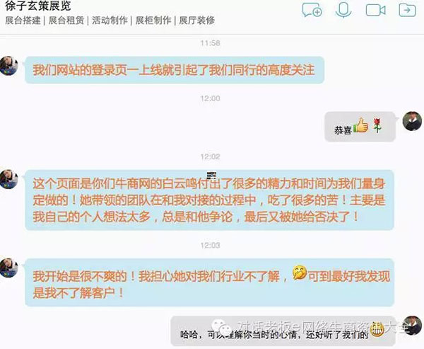 “誰能做出效果令我滿意的網(wǎng)站呢?”想來想去,徐總還是找到在上海口碑很好的牛商網(wǎng)。和牛商網(wǎng)合作期間,徐總的完美主義情結(jié)多次爆發(fā),他擔(dān)心牛商網(wǎng)的項(xiàng)目團(tuán)隊(duì)對行業(yè)不了解,針對網(wǎng)站的策劃、設(shè)計(jì)提出想法并堅(jiān)持己見,項(xiàng)目團(tuán)隊(duì)負(fù)責(zé)人白云鳴甚至多次“罵醒”徐子。在雙方為網(wǎng)站“爭執(zhí)”的時(shí)候,白云鳴協(xié)調(diào)設(shè)計(jì)師針對雙方堅(jiān)持的想法,分別做了兩個版本的設(shè)計(jì)稿。對比之下,徐子發(fā)現(xiàn)牛商網(wǎng)的設(shè)計(jì)站在客戶的角度,更適合網(wǎng)絡(luò)營銷。建站期間,徐子為了和項(xiàng)目團(tuán)隊(duì)的小伙伴交流想法,經(jīng)常在牛商網(wǎng)呆到晚上10點(diǎn)多,因此自嘲“釘子戶”。