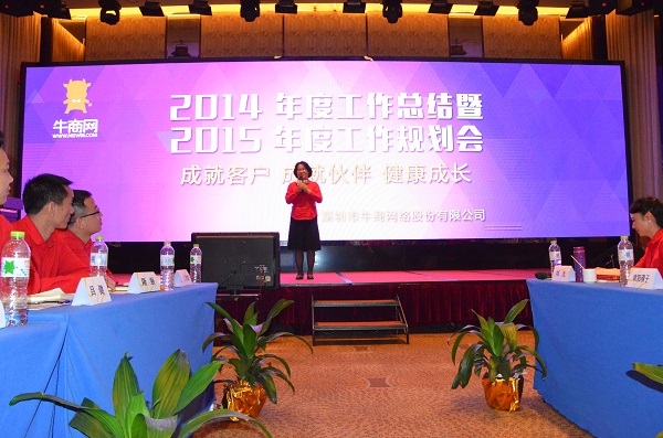 袁總、劉總、曾總以其獨特的方式既對2014年進行了總結(jié),也對2015年進行了規(guī)劃。袁總以故事的形式的分享,表達了2014年的心路,其中有喜悅,也有擔心;也表達了對2015年的新路和必達的決心;袁總還用更好的戰(zhàn)略和策略去支撐新的目標,2015年牛商網(wǎng)將走一條新路,也必將達到新的目標;袁總還用更多更好的戰(zhàn)術策略去支撐新的目標,讓我們在新的一年真正做好“成就客戶,成就伙伴”,從而讓公司健康的成長。劉總重點用數(shù)據(jù)的形式,曾總以微笑的形式更好闡釋了公司新的目標,而后各位部門總監(jiān)也以其自有的形式總結(jié)和規(guī)劃了其部門工作;所有人眾志成城,萬眾一心的朝著2015年的新目標一起走,起前行。