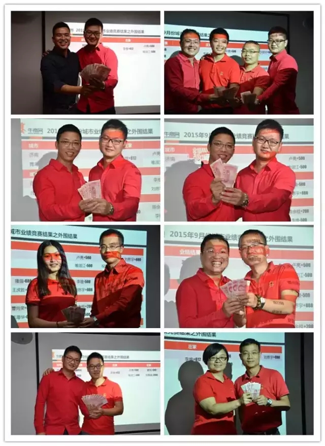 在年前的時候就定出了今年的目標,然后細分到每一個月。對于銷售型公司來說定目標不難,在從月細分到人。每次業(yè)務會議都會進行下月(季)度業(yè)績?nèi)蝿照J領,PK。例如,2015年第四季度,每2個城市的業(yè)績負責人互相PK。以業(yè)績高低定輸贏,別的城市還能“坐莊、買碼”。