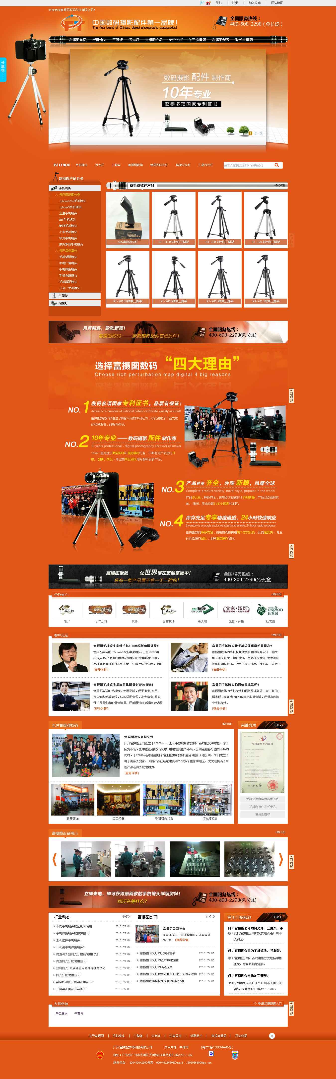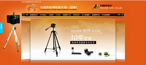 網(wǎng)站首屏介紹了這家公司的實(shí)力,10年專業(yè)數(shù)碼攝影配件制作商,同時(shí)獲得國(guó)家多項(xiàng)專利證書(shū),在首屏的廣告位置還加上這家公司的主要產(chǎn)品加以展示,首屏有效的吸引了進(jìn)來(lái)的每一位訪客的視覺(jué),讓訪客有深入了解其它產(chǎn)品的意愿!