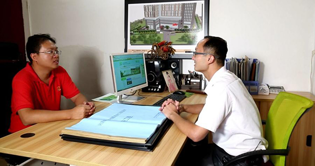 牛商網(wǎng)劉俊程總監(jiān)(左)上門(mén)服務(wù)與王俊明王總(右)交流