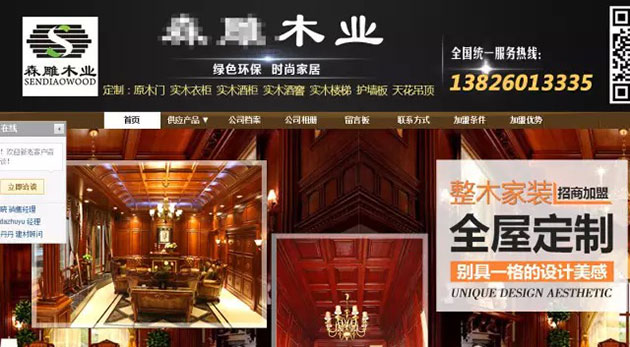 這…確定這不是化妝品網(wǎng)站?難道是打開的方式有誤?重來…(就這一下,又點去這公司幾塊錢呢?。┰俅蜷_網(wǎng)站,網(wǎng)站首頁首屏依舊是個化妝品專柜圖片!快速瀏覽了下,好像是做木門的嘛!想先咨詢下,點開聊天窗口,提示留下姓名電話并且留言。好吧,即時溝通都不能實現(xiàn)!這個網(wǎng)站得給個5分差評!之后隨手打開了幾個【圖1】顯示的網(wǎng)站,出來的網(wǎng)站有阿里巴巴、淘寶店鋪類的,富麗堂皇的家裝木門什么的,真真兒的五花八門!
