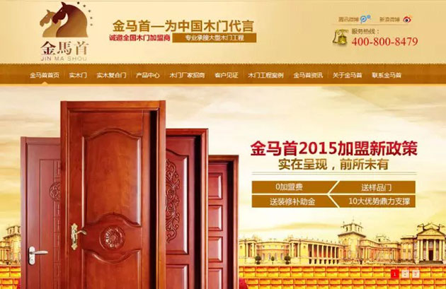 【圖6】金馬首木門招商加盟營銷型網(wǎng)站首頁首屏(網(wǎng)址:www.jinmashou.com)
