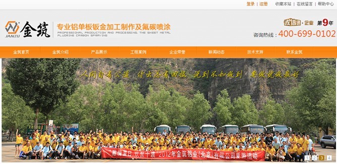金筑鋁業(yè)網(wǎng)站整體風(fēng)格預(yù)覽,溫馨提示:案例網(wǎng)站內(nèi)容比較多,網(wǎng)站截圖比較大,如果圖片沒有及時(shí)加載圖片請(qǐng)耐心等待加載或者刷新網(wǎng)頁重新進(jìn)行案例圖片加載。