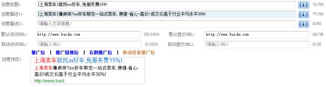 過長的關鍵詞會導致在創(chuàng)意中無法全部展現(xiàn)初來,并且有可能會造成創(chuàng)意原本的標題、描述被過長的關鍵詞遮蔽,導致創(chuàng)意語句不通順,網民無法理解商家需要表達的信息,而商家也無法通過創(chuàng)意體現(xiàn)出原本需要表達的訴求點和吸引點;進而導致創(chuàng)意賣點被忽略,潛在用戶流失。并且在筆者的優(yōu)化過程中發(fā)現(xiàn),創(chuàng)意的長短其實對 關鍵詞的質量度和排名有著一定比重的影響。短創(chuàng)意對質量度、排名的提升更明顯。如何定義短創(chuàng)意呢?這通過自身的經歷,給到大家以下的建議:①標題的字符數 限制在30個字符左右。②描述只寫第1行,第2行空著不寫,如圖3。