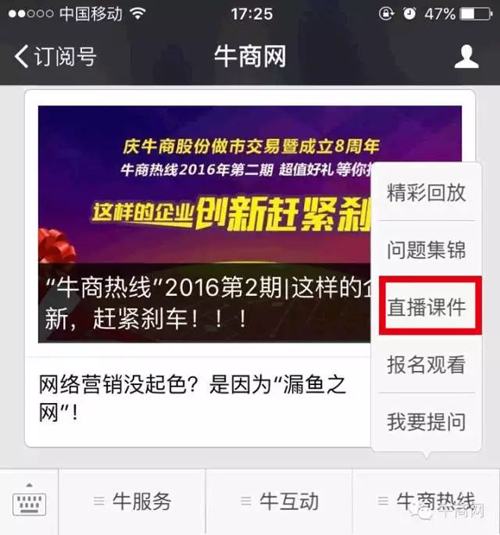 關(guān)注牛商網(wǎng)官方微信nsw88com,點(diǎn)擊菜單欄[牛商熱線]上的[直播課件]下載課件,或者回復(fù)“課件”也能下載哦!。