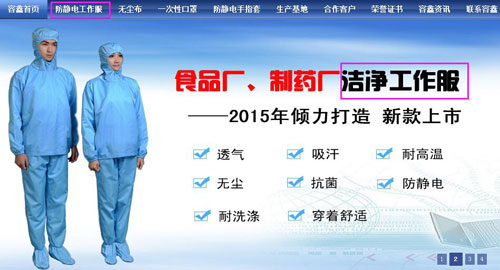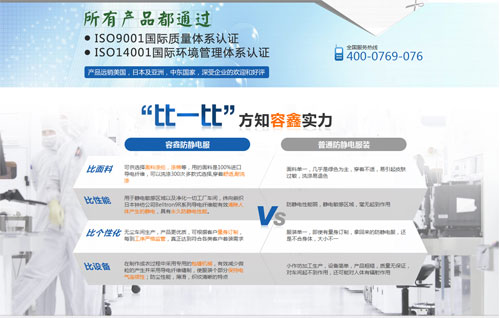 一個網(wǎng)站沒有核心產(chǎn)品打動客戶的話,客戶流失率將提高30℅。在營銷型網(wǎng)站首屏中,容鑫的核心產(chǎn)品“防靜電工作服”,不僅在導(dǎo)航欄的第二欄顯示,在廣告圖中也突出強調(diào)。第一時間用吸引意向客戶。