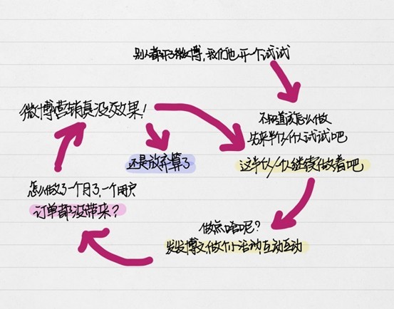 很多小微企業(yè),就一直糾纏在這個(gè)怪圈里面循環(huán),無法自拔。微博營銷可能就成了推廣雞肋,一方面覺得好像沒什么用,另一方面又不愿真正放棄。