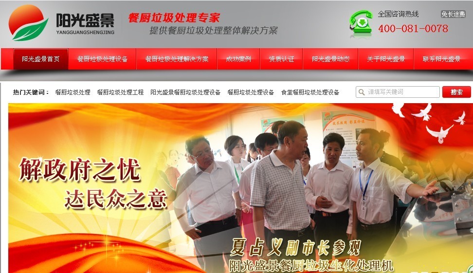 陽光盛景之餐飲垃圾處理營銷型網(wǎng)站首屏展示: