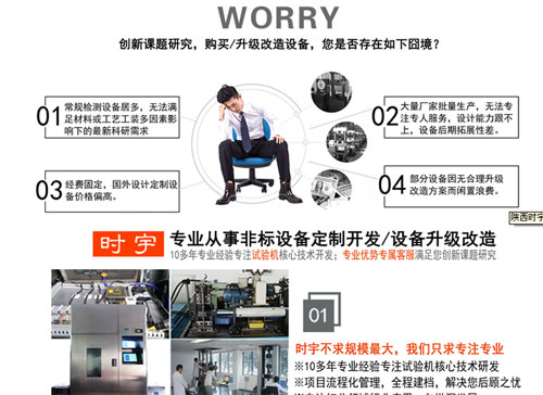 陜西時(shí)宇智能儀器有限公司(簡(jiǎn)稱時(shí)宇檢測(cè))成立于2006年,座落于有“中國(guó)西部硅谷”之稱的西安北郊經(jīng)濟(jì)技術(shù)開發(fā)區(qū),是專注于非標(biāo)材料檢測(cè)設(shè)備的研發(fā)、生產(chǎn)及其他科研服務(wù)為一體的高新企業(yè)。非標(biāo)材料檢測(cè)設(shè)備不是按照國(guó)家頒布的統(tǒng)一行業(yè)標(biāo)準(zhǔn)和規(guī)格制造的設(shè)備,而是根據(jù)客戶個(gè)性化需求,量身設(shè)計(jì)和制造的檢測(cè)設(shè)備,對(duì)廠商的設(shè)計(jì)、定制、升級(jí)能力要求高。非標(biāo)設(shè)備應(yīng)用廣泛,是未來(lái)工業(yè)設(shè)備集成發(fā)展的主流。