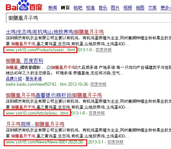 深圳土雞這個關鍵詞排在了百度首頁第一的位置,獲得了主要的客戶群體的流量來源